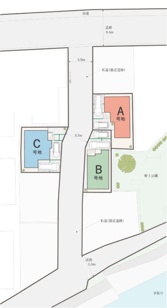 将来の修繕・建替え時に、他人の設備に気を遣う必要がない、安心感のある分譲地です。